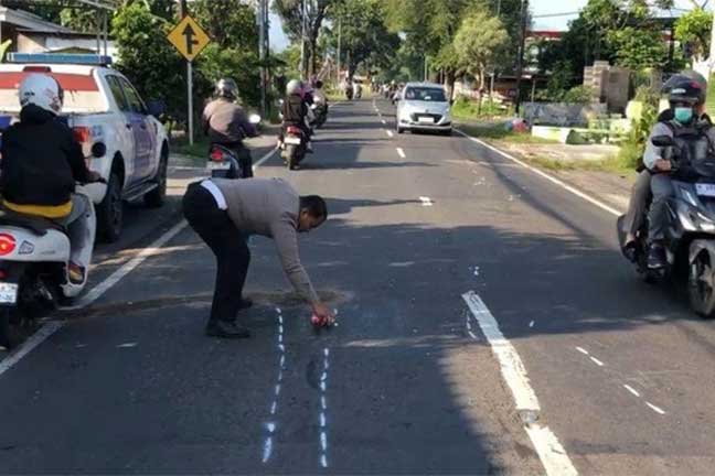 Polisi sedang melakukan olah TKP insiden kecelakaan di Jalan Raya Sampangagung, Kecamatan Kutorejo, Kabupaten Mojokerto. (Foto: IST)