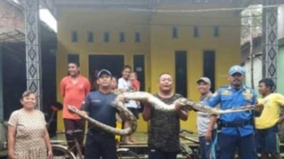 Biawak Besar “Riyayan” ke Rumah Warga Mojotrisno Jombang, Evakuasinya Bikin Deg-degan